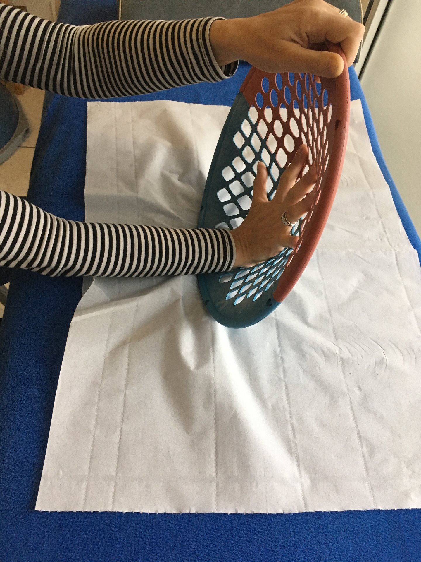 Etirements et exercices de renforcement du poignet se poursuivent pour Véronique.